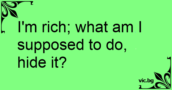 I'm rich; what am I supposed to do, hide it?