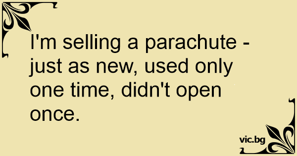 Inserzione giornalistica: Vendesi paracadute. Usato una sola volta. Mai aperto. Piccola macchia.