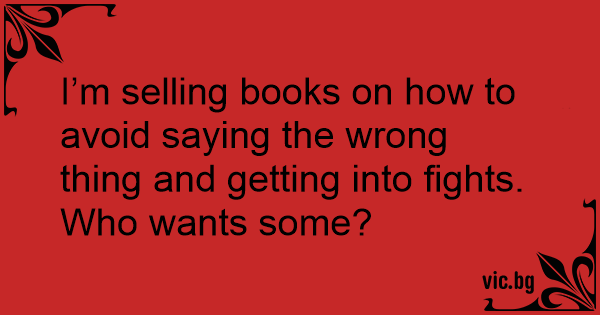 I’m selling books on how to avoid saying the wrong thing and getting into fights.