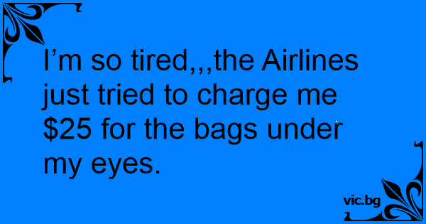 I’m so tired,,,the Airlines just tried to charge me $25 for the bags under my eyes.