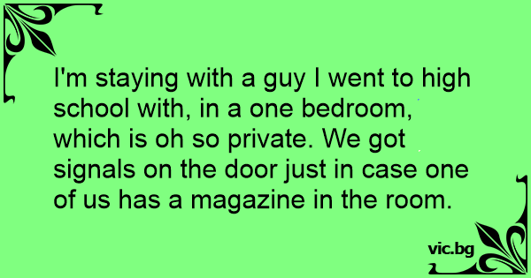 I'm staying with a guy I went to high school with, in a one bedroom, which is oh so private. We got signals on the door just in case one of us has a magazine in the room.