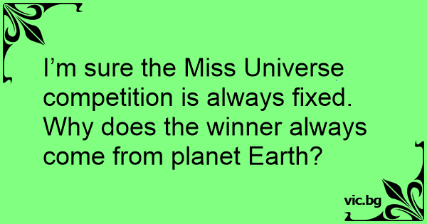 I’m sure the Miss Universe competition is always fixed. Why does the winner always come from planet Earth?