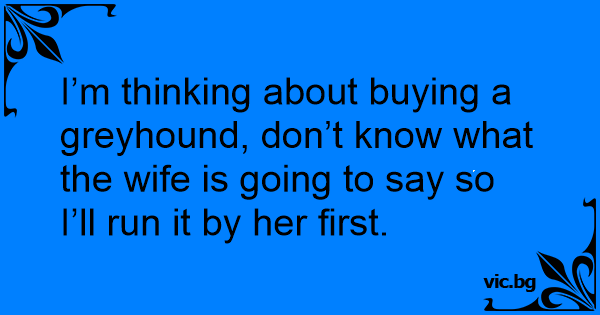 I’m thinking about buying a greyhound, don’t know what the wife is going to say so I’ll run it by her first.