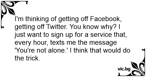 I'm thinking of getting off Facebook, getting off Twitter. You know why? I just want to sign up for a service that, every hour, texts me the message 'You're not alone.' I think that would do the trick.
