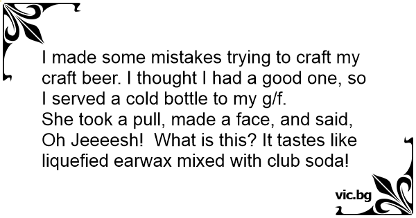 I made some mistakes trying to craft my craft вееr. I thought I had a good one, so I served a cold bottle to my g/f.