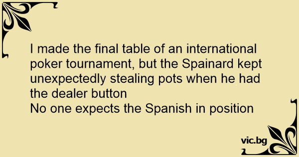 I made the final table of an international poker tournament, but the Spainard kept unexpectedly stealing pots when he had the dealer button