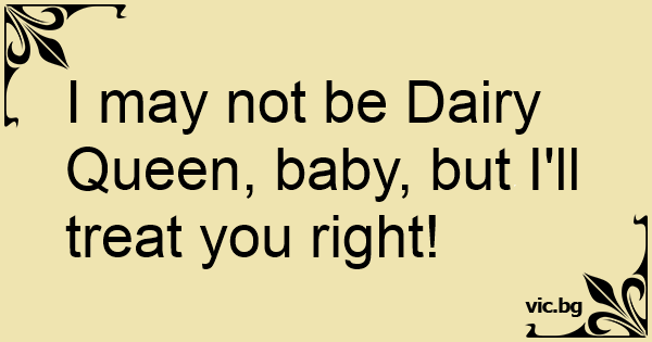 I may not be Dairy Queen, baby, but I'll treat you right!