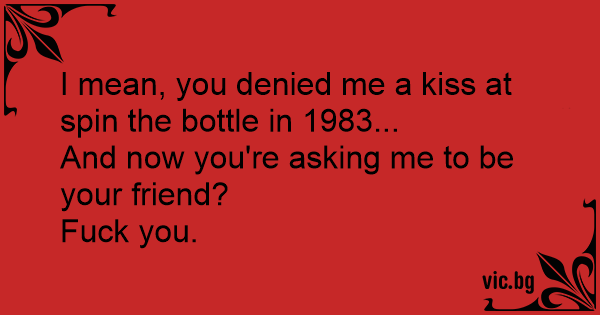 I mean, you denied me a kiss at spin the bottle in 1983...