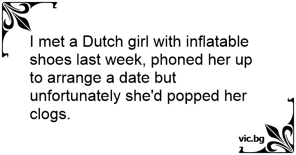 I met a Dutch girl with inflatable shoes last week, phoned her up to arrange a date but unfortunately she'd popped her clogs.
