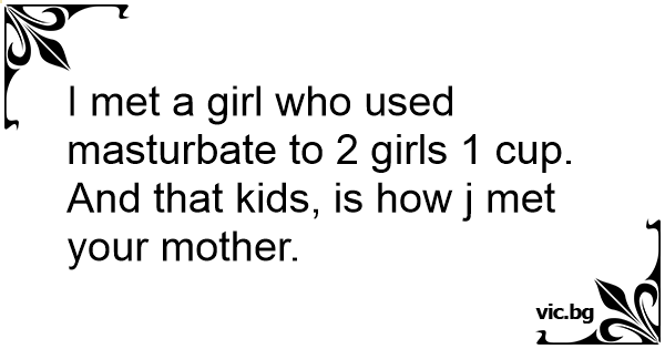 I met a girl who used маsтurвате to 2 girls 1 cup. <br />And that kids, is how j met your mother.
