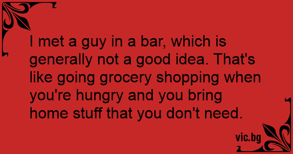 I met a guy in a bar, which is generally not a good idea. That's like going grocery shopping when you're hungry and you bring home stuff that you don't need.