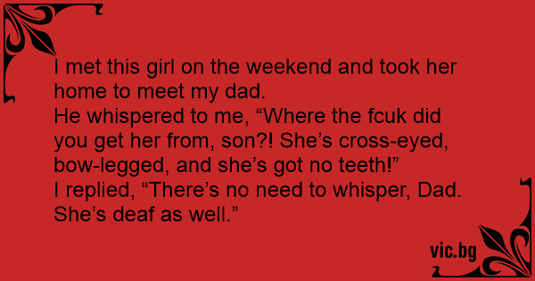 He whispered to me, “Where the fсuк did you get her from, son?! She’s cross-eyed, bow-legged, and she’s got no teeth!”