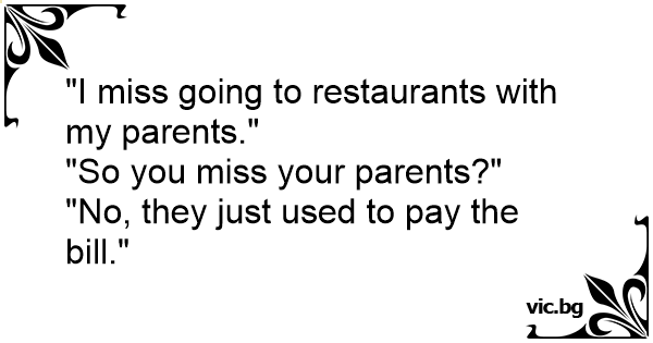"I miss going to restaurants with my parents."