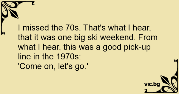 I missed the 70s. That's what I hear, that it was one big ski weekend. From what I hear, this was a good pick-up line in the 1970s: