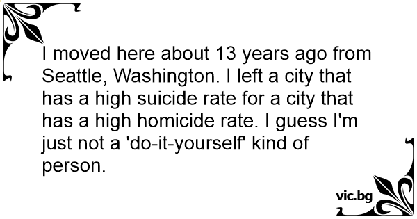I moved here about 13 years ago from Seattle, Washington. I left a city that has a high suicide rate for a city that has a high homicide rate. I guess I'm just not a 'do-it-yourself' kind of person.