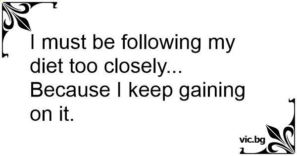 I must be following my diet too closely...Because I keep gaining on it. 0 0 0 Double Meaning and Wordplay Jokes