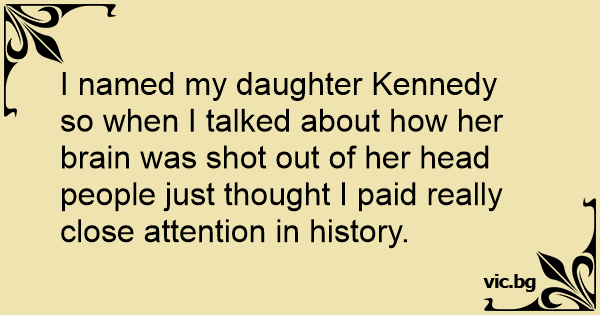 I named my daughter Kennedy so when I talked about how her brain was shot out of her head people just thought I paid really close attention in history.