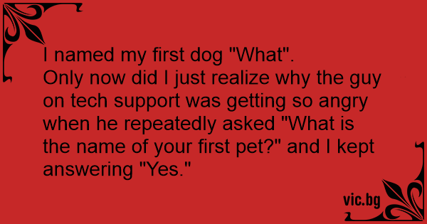 Only now did I just realize why the guy on tech support was getting so angry when he repeatedly asked "What is the name of your first pet?" and I kept answering "Yes."