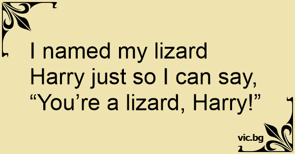 I named my lizard Harry just so I can say, “You’re a lizard, Harry!”