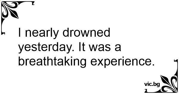 I nearly drowned yesterday. It was a breathtaking experience.