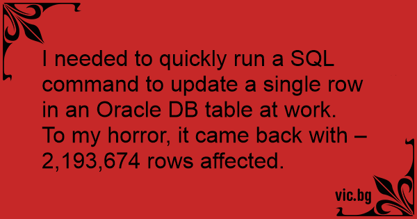 I needed to quickly run a SQL command to update a single row in an Oracle DB table at work.