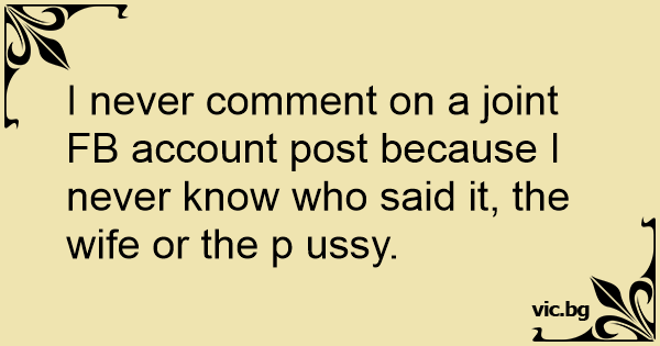 I never comment on a joint FB account post because I never know who said it, the wife or the p ussy.