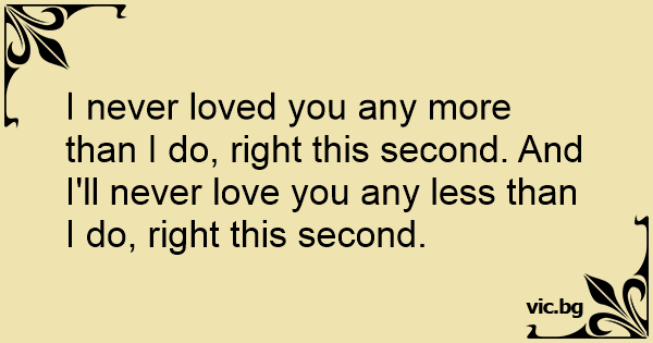 I never loved you any more than I do, right this second. And I'll never love you any less than I do, right this second.