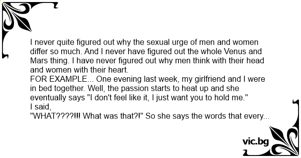 I never quite figured out why the sеxuаl urge of men and women differ so much. And I never have figured out the whole Venus and Mars thing. I have never figured out why men think with their head and women with their heart.