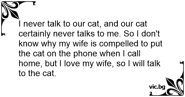 I never talk to our cat, and our cat certainly never talks to me. So I don't know why my wife is compelled to put the cat on the phone when I call home, but I love my wife, so I will talk to the cat.