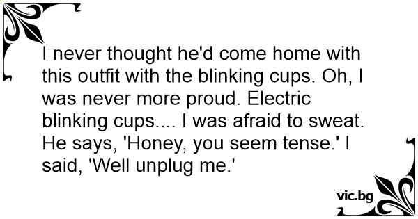 I never thought he'd come home with this outfit with the blinking cups. Oh, I was never more proud. Electric blinking cups.... I was afraid to sweat. He says, 'Honey, you seem tense.' I said, 'Well unplug me.'