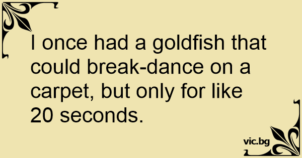I once had a goldfish that could break-dance on a carpet, but only for like 20 seconds.
