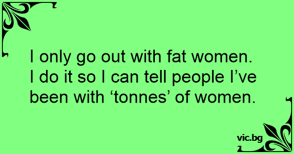 I only go out with fат women.I do it so I can tell people I’ve been with ‘tonnes’ of women. 0 0 0 Jokes about Women Fat Jokes