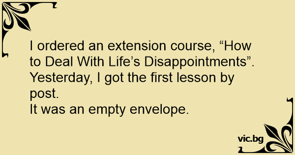 I ordered an extension course, “How to Deal With Life’s Disappointments”.