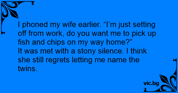 I phoned my wife earlier. “I’m just setting off from work, do you want me to pick up fish and сhiрs on my way home?”