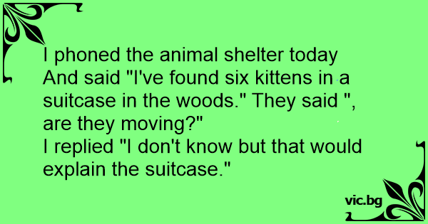 And said "I've found six kittens in a suitcase in the woods." They said ", are they moving?"