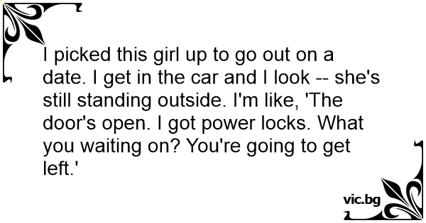 I picked this girl up to go out on a date. I get in the car and I look -- she's still standing outside. I'm like, 'The door's open. I got power locks. What you waiting on? You're going to get left.'
