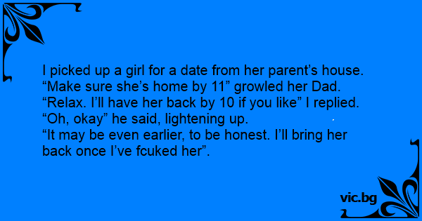 “Relax. I’ll have her back by 10 if you like” I replied.