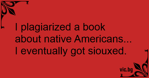 I plagiarized a book about native Americans...<br />I eventually got siouxed.