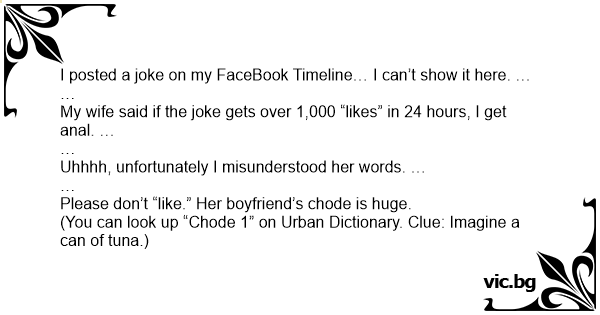 I posted a joke on my FaceBook Timeline… I can’t show it here. …
