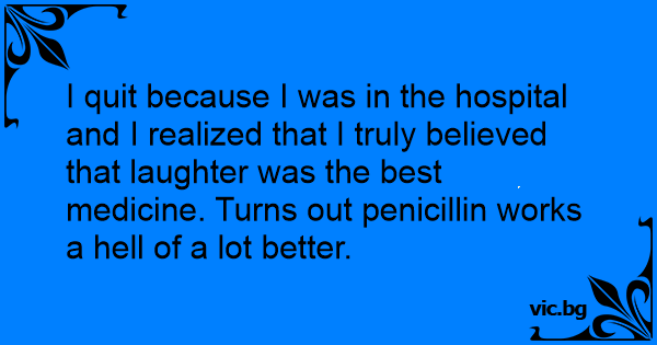 I quit because I was in the hospital and I realized that I truly believed that laughter was the best medicine. Turns out penicillin works a hеll of a lot better.