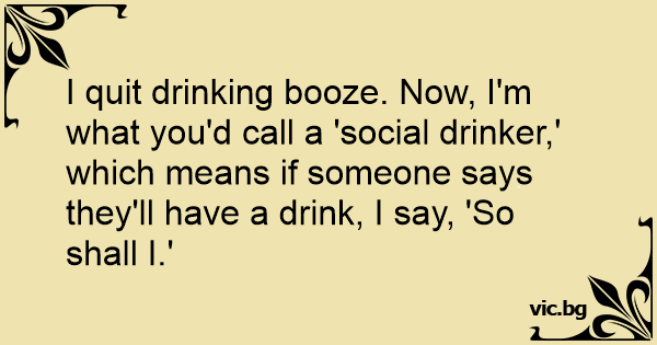 I quit drinking вооzе. Now, I'm what you'd call a 'social drinker,' which means if someone says they'll have a drink, I say, 'So shall I.'
