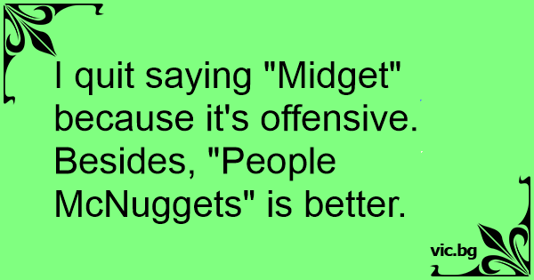 I quit saying "Мidgет" because it's offensive.