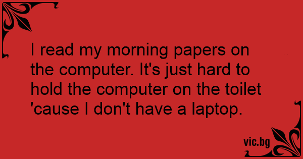 I read my morning papers on the computer. It's just hard to hold the computer on the toilet 'cause I don't have a laptop.