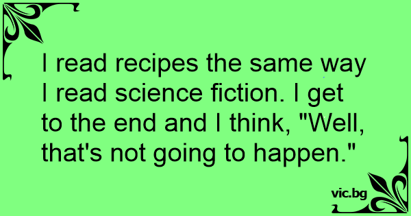 I read recipes the same way I read science fiction. I get to the end and I think, "Well, that's not going to happen."
