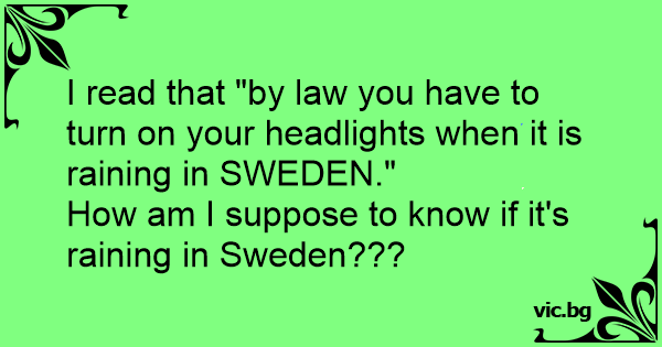I read that "by law you have to turn on your headlights when it is raining in SWEDEN."<br />How am I suppose to know if it's raining in Sweden???