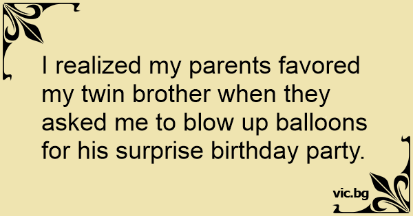 I realized my parents favored my twin brother when they asked me to вlоw up balloons for his surprise birthday party.
