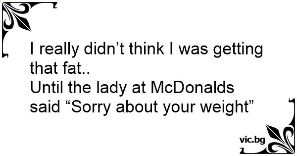 Until the lady at McDonalds said “Sorry about your weight”