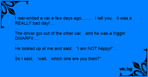 The driver got out of the other car, and he was a friggin’ DWARF!! …