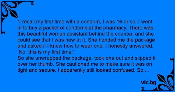 “I recall my first time with a соndом, I was 16 or so. I went in to buy a packet of condoms at the pharmacy. There was this beautiful woman assistant behind the counter, and she could see that I was new at it. She handed me the package and asked if I knew how to wear one. I honestly answered, ‘No, this is my first time.’