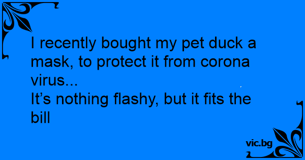 I recently bought my pet duck a mask, to protect it from corona virus...